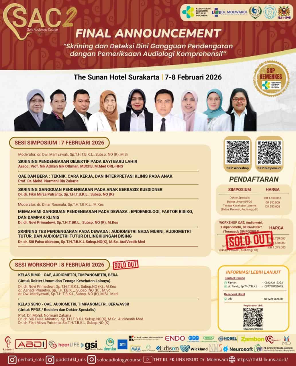 PT. Wickland Medika Imantara is proud to participate in the SAC 2 – Solo Audiology Course, held at The Sunan Hotel Solo, on February 07-08, 2026. Our presence at this event reflects our commitment to delivering high-quality medical device solutions, particularly in the field of Ear, Nose, and Throat (ENT) care.
